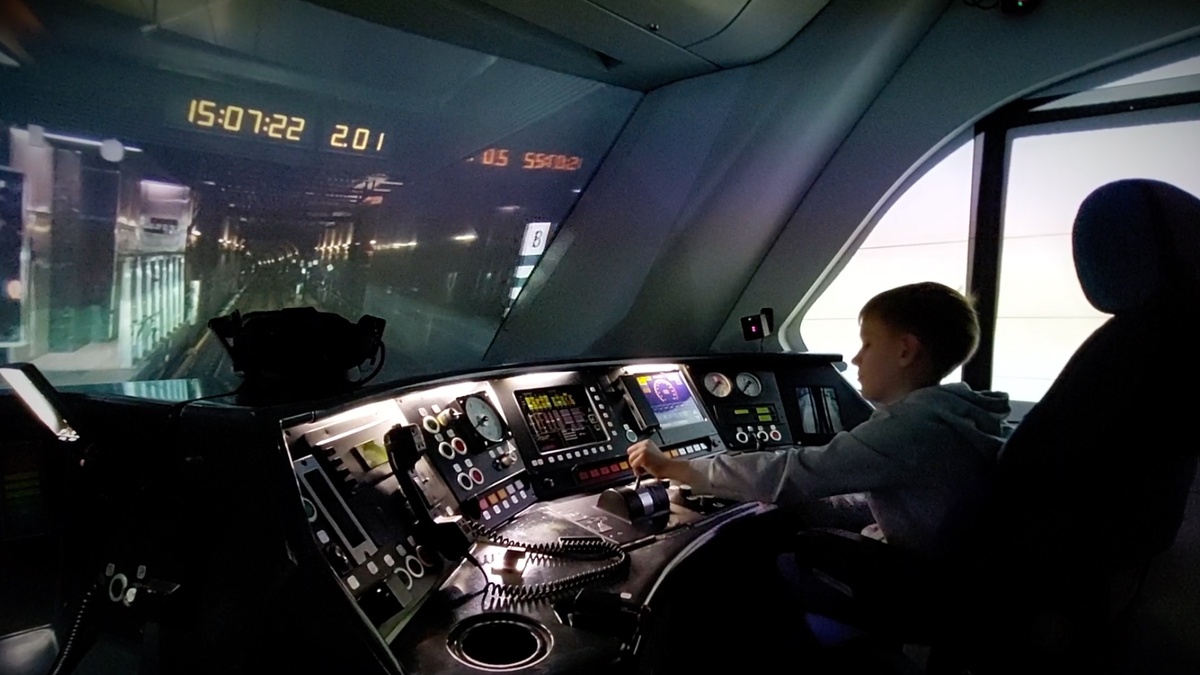 Симулятор поезда в Павильоне Московского транспорта / Поезд "Ласточка"-Иволга" едет в метро по БКЛ