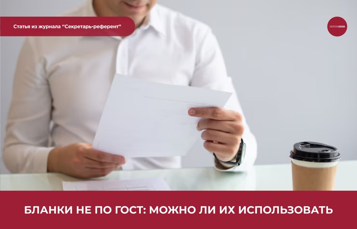Читайте в апрельском номере журнала "Секретарь-референт" Что делать, если при заказе новых бланков не учли требования государственного стандарта к их оформлению? Можно ли пользоваться бланками, если необходимые реквизиты на них расположены не в соответствии с ГОСТ Р 7.0.97-2016? Что вообще должно быть на бланке организации? Расскажем в статье и приведем примеры. Читать статью