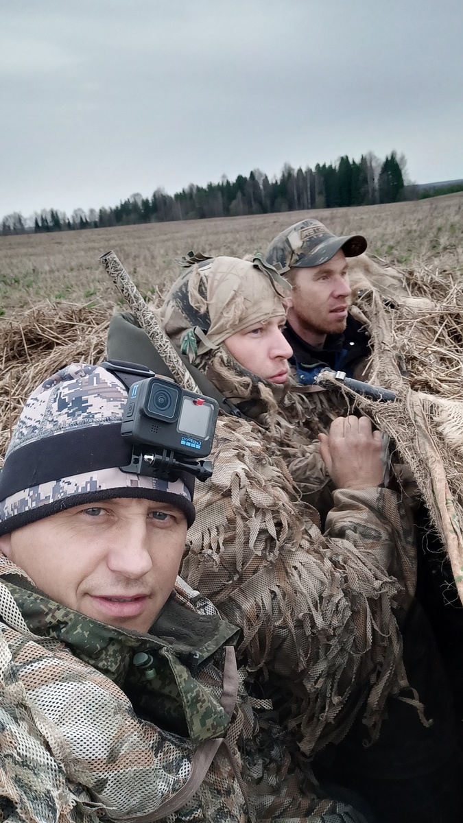 Всем привет! Маскировка на гусиной охоте один из самых важных этапов в подготовке, от неё напрямую зависит на сколько близко можно наманить гуся на скрадок. На любые массети обязательно нужно добавлять натуральные материалы(трава,солома,ветки и т.п.) непосредственно с места организации скрадка. Если в скрадке находится несколько охотников, то лучше если у всех масхалаты одного типа и оттенка, чтобы и скрадок и охотники сливались в единое целое с местностью. Очень не мало важный фактор маска на лице охотника и маскировка самого оружия. Самое главное, что бы ствол ружья не бликовал. Свой маскхалат я покупал в прошлом году в магазине Экстрим, в Кирове, в расцветке "осока", просто в коллективе у всех были именно такие, ну и я взял аналогичный, чтобы не выделятся. Ружьё обмотал одноразовый маскирвачной лентой. С такой экипировкой я удачно проохотился всю весеннюю охоту, не только на гуся, но и на селезня и даже вальдшнепа! Делитесь своими вариантами маскировки, скрадкми, одеждой, кто что