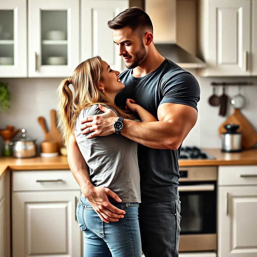 Зайдя на кухню, Кристина увидела Тони. Он стоял у плиты в фартуке, его обнажённый торс был освещён мягким светом, который играл на его мускулатуре. Кристина не могла отвести взгляд от того, как мышцы на его спине выделялись на свету.