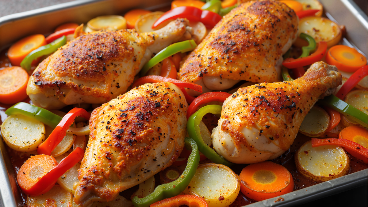 Сегодня не было времени ходить по магазинам, и я решила приготовить что-нибудь вкусненькое из простых и доступных продуктов. Это сытное блюдо, которое легко приготовить. Давайте начнем. 🥔 картофель — 5 - 6 шт. 🥕 морковь — 1–2 шт. 🧅 лук репчатый — 1- 2 шт. 🧄 чеснок — 3–4 зубчика 🌶️ болгарский перец — 1 - 2 шт. 🛢️ растительное масло — 3 ст. л. 🧂 соль , специи — по вкусу 🌶️ паприка — 1 ч. л. 🌿 сушёные травы — 1 ч. л. Приготовление: Курицу натереть солью, перцем, паприкой и немного маслом. Можно оставить на 10–15 минут, чтобы пропиталась. Картошку и морковь нарезать крупными дольками. Болгарский перец порезать соломкой. Лук полукольцами. Чеснок нарезать тонкими пластинками или мелко — по вкусу. В форму для запекания выложить лук, картофель, морковь и болгарский перец сверху курицу, потом чеснок. Сбрызнуть маслом и посыпать любимыми специями. В разогретую до 180° духовку поставить форму и запекать 50-60 минут. Время зависит от вашей духовки. Проверяем ножом