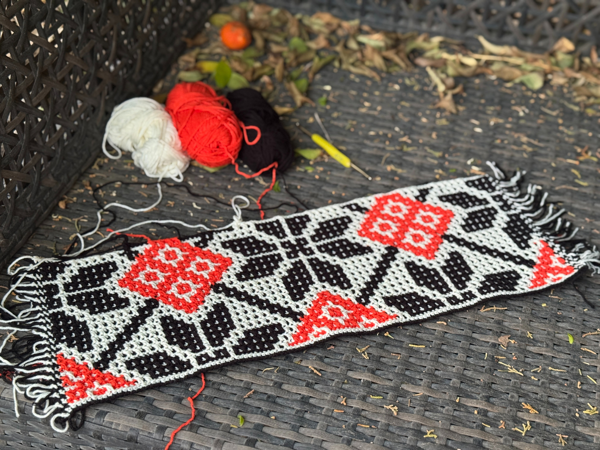 СХЕМЫ в Excel Мозаичное вязание крючком очень удобно: можно сделать многоцветное полотно, не путаясь в бесконечных клубках и не протягивая внутри полотна нити. Сама техника позволяет получать удивительные по красоте орнаменты, сохраняя только один цвет в ряду. Но что если нам хочется добавить еще один цвет в ряду, чтобы разнообразить узор? Возможно ли вязать двумя цветами в одном ряду, но так, чтобы скорость вязания не снижалась, а клубки не мешались? Я провела эксперимент на орнаменте «Цветочная геометрия» – мы уже много вязали с вами в этом проекте, но я немного видоизменила схему, выделив на ней геометрический узор для его вязания дополнительным цветом. В тех рядах, где мне нужно было использовать сразу два цвета, я попробовала сначала инверсию – но большое количество клубков меня сразу стало раздражать. Поэтому я довольно быстро перешла на метод обрыва нити: вяжу сначала необходимое количество петель одной нитью, потом, на границе с другим цветом обрываю ее и перехожу на нить контр