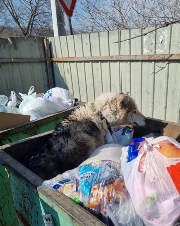 Житель Находки обнаружил в мусорном баке на улице Еловой (район Кедра) еле живого хаски. Пёс был в ошейнике, с признаками драк и сильного истощения. Молодой человек отвёз его в клинику. Ветеринары обработали раны, взяли анализы и назначили интенсивную терапию: антибиотики и капельницы. Сейчас хаски находится у спасителя — Евгения. Однако из-за наличия двух других собак, не слишком радушно встретивших нового «квартиранта», псу срочно ищут старых или новых хозяев. Если у вас есть информация о возможных хозяевах — сообщите им о собаке. Возможно, хаски просто потерялся, а не был выброшен умышленно. Связаться с Евгением можно по номеру +7 924 723-91-79