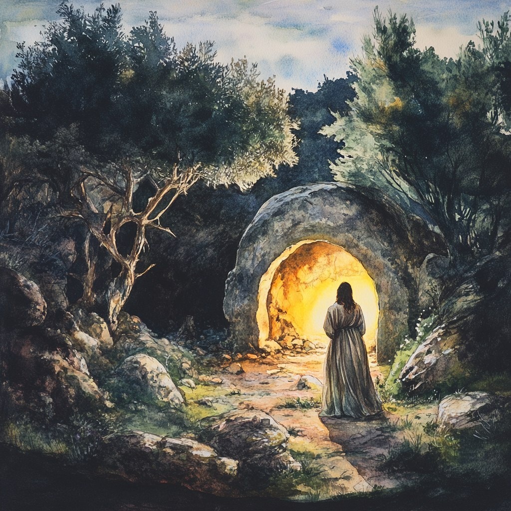 Создано на основе запроса: a loose watercolor illustration of the tomb of Jesus
