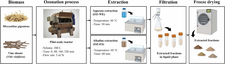 В сравнительном исследовании, проведенном испанскими учеными, изучалось влияние озонирования на биоактивные свойства водорастворимых экстрактов лигнина из Miscanthus giganteus (биомассы травянистого типа) и Vitis vinifera (биомассы древесного типа). Оценивалось общее содержание полифенолов, антиоксидантная активность (тесты ABTS, DPPH и на обесцвечивание β-каротина) и противомикробные свойства.