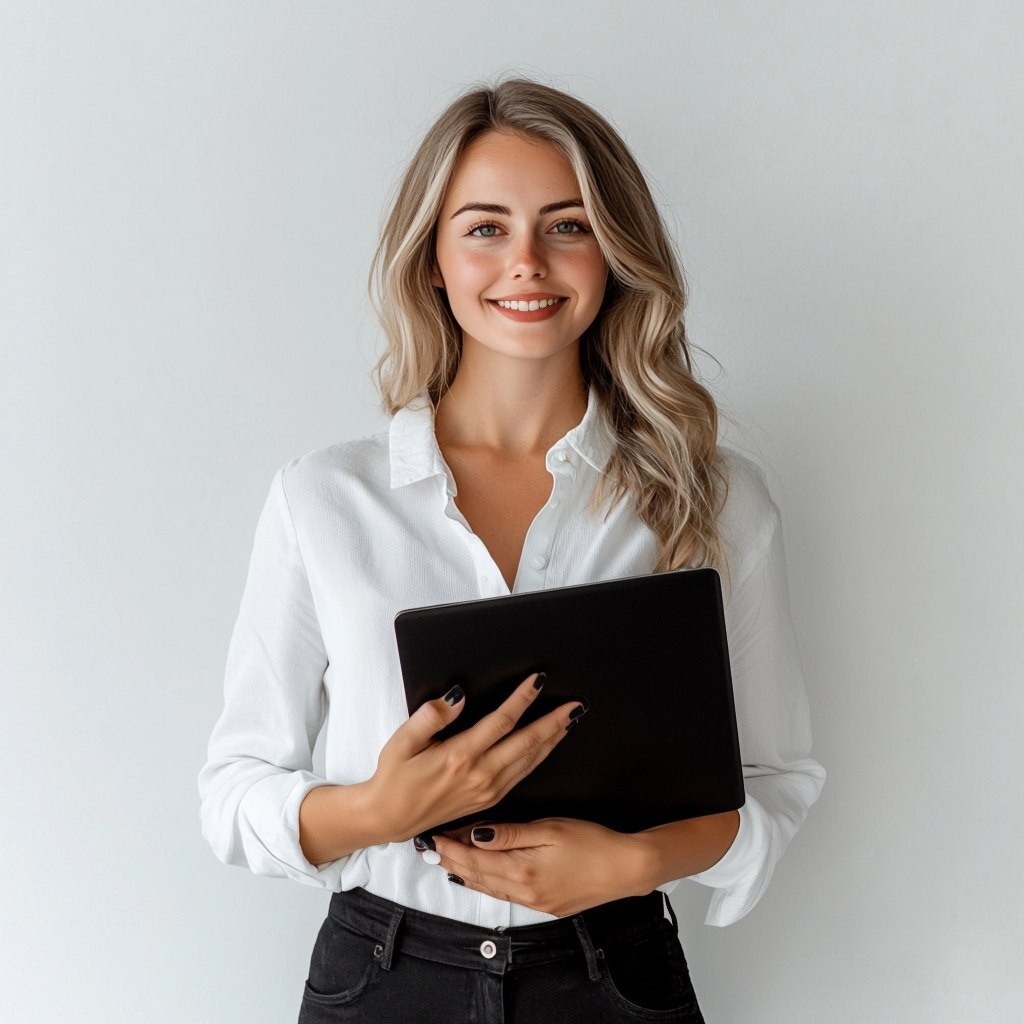 Создано на основе запроса: A realistic photo of 30y.o. german woman who is SMM manager, to the waist, smiling with teeth, wearing casual (black or white), holding the laptop, modern clean look, front view, bright lighting, no background, professional photography, shot on Canon EOS 5D, ultra-realistic --- Автоперевод: Реалистичная фотография 30y.O. Отлично выглядит? 🤔 https://dzen.ru/id/65c0c65c86e4f837c27b24d7 #ИИ #AI #нейросеть #midjourney #art