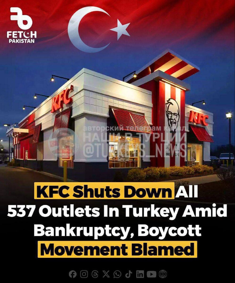 🇹🇷 В ТУРЦИИ ЗАКРЫЛИСЬ ВСЕ 537 KFC — ОБЪЯВЛЕНО БАНКРОТСТВО