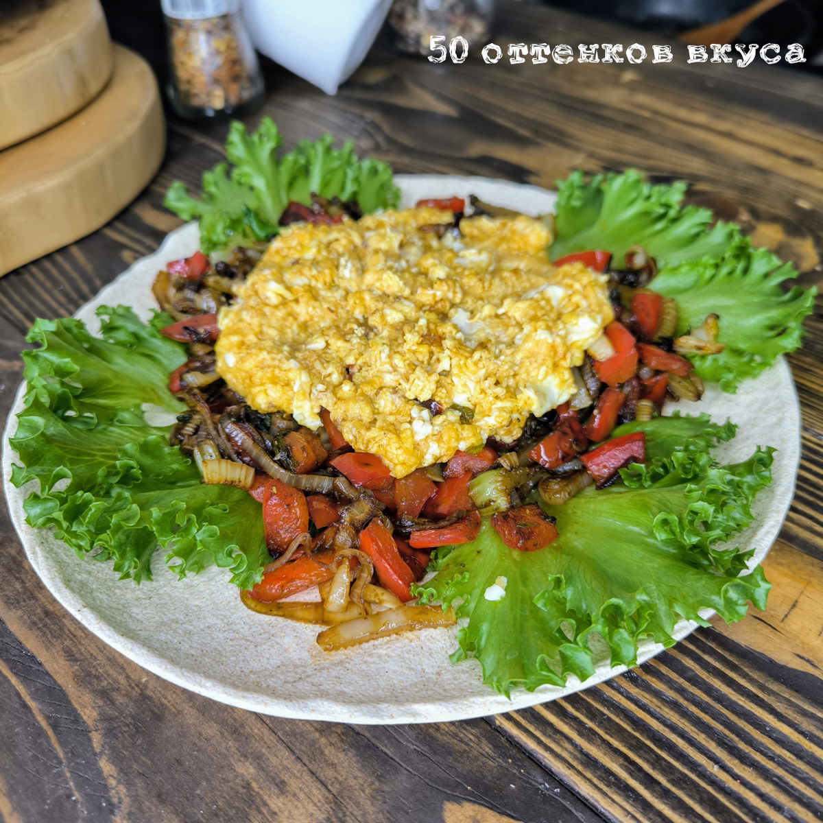 Готовый омлет выкладываем на овощи и наслаждаемся!