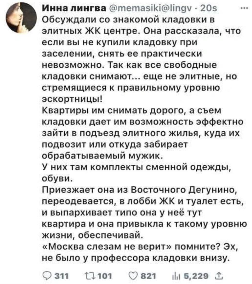 Вот вам бизнес-план 😂 1️⃣ Покупаем кладовку в «илитном» ЖК 2️⃣ Сдаем ее дамам с пониженной социальной ответственностью 3️⃣ ……. 4️⃣ Профит #финансы #ипотека #недвижимость