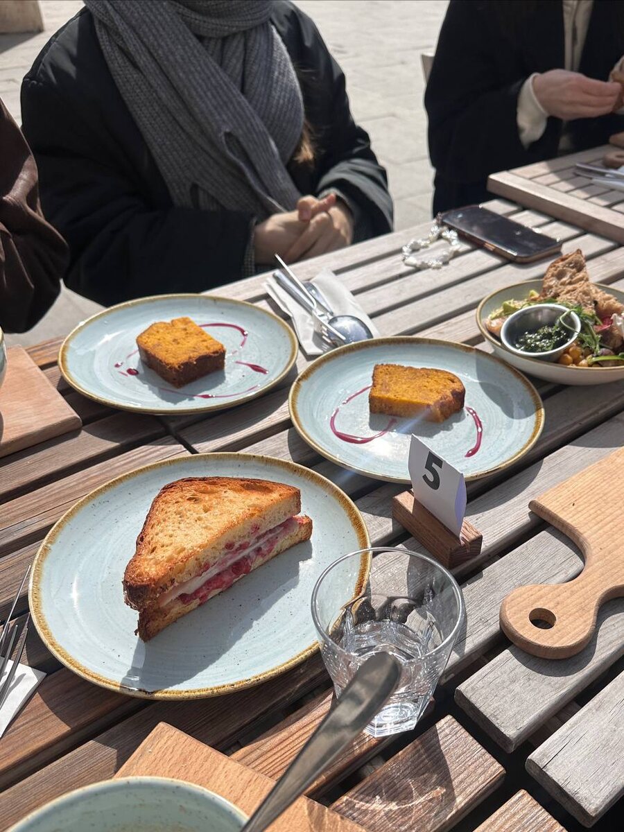 Официально открыли с коллегами сезон веранд ❤️ В первые теплые дни случился обед в Waterfront. По нашим образам трудно понять, сколько градусов за окном. Лера выбрала атласную юбку поверх джинсов, а Регина – куртку из экокожи и теплый свитер. В комментариях делитесь своими любимыми местами для обедов 👇