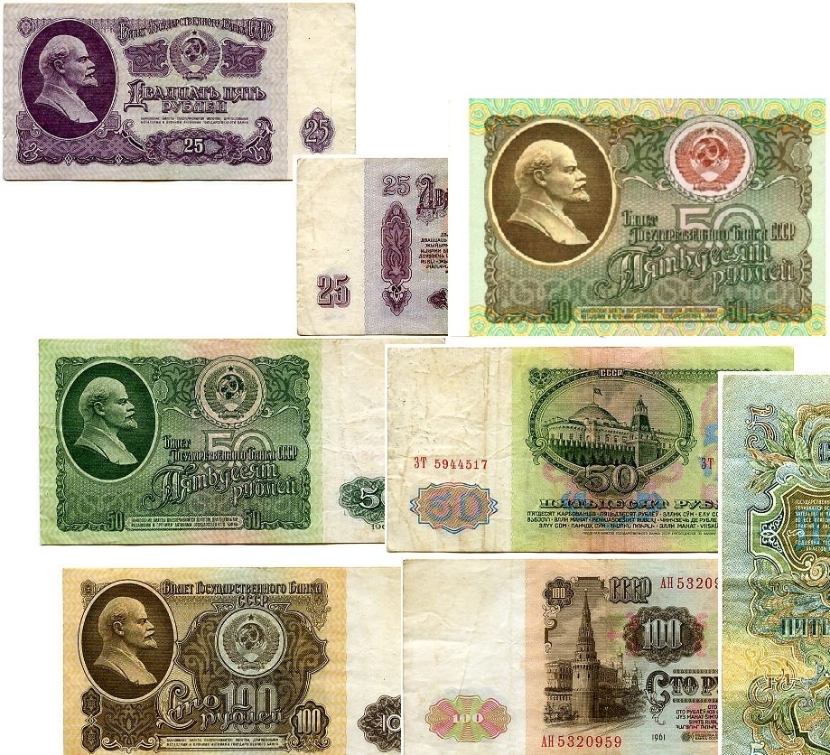 Лично я не застал как выглядели те советские деньги. Но помню по детву был период что деньги обесценились и их нужно было огромными пачками сдавать в обмен на новые. Также помню как отец как то решил прибраться на работе. На работе был автопарк. И в этом автопарке стоял автомобиль прямиком из СССР, москвич (правда не помню какой марки, но помню оранжевый цвет его). Этот автомобиль решили продать, он даже заводился и имел номера, советские правда, но как я понял на нем, только пройди тех осмотр и можно выезжать куда угодно. Да к вот в бардачке этого автомобиля было припрятано множество купюр времен СССР. И на ручке переключения передач была розочка, фишка тех лет. Деньги выглядели как то так, я вам ниже сброшу примеры.