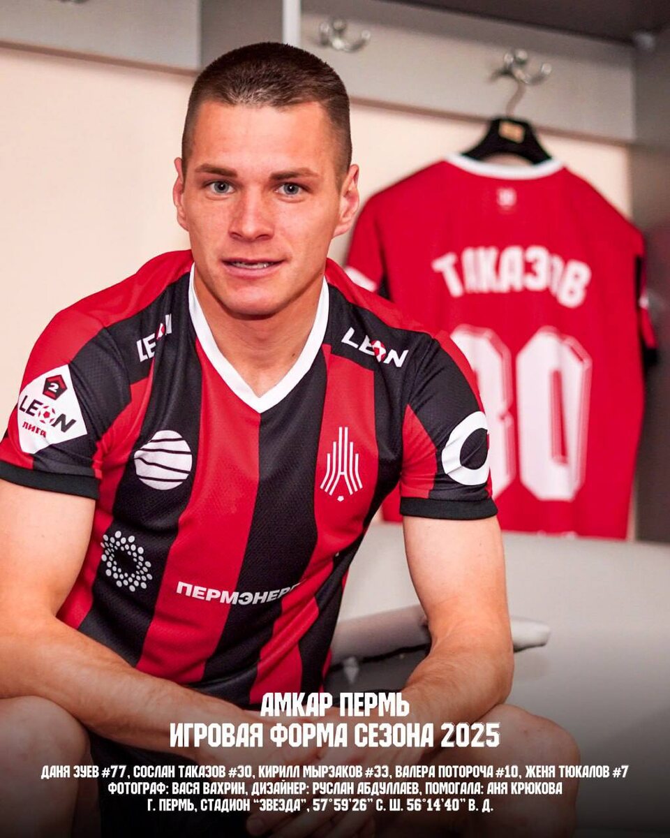 Всем привет! На связи пермский «Амкар». Мы дропнули новую форму и ретро-шрифт к 30-летию клуба. Домашний красно-чёрный комплект цитирует форму «Амкара» сезонов 2008-2009: те же полосы, тот же белый воротник менно в этой форме пермский «Амкар» победил на своём поле лондонский «Фулхэм» в Лиге Европы в 2009 году. Об этом напоминает деталь на внутренней стороне футболки — схема гола Мартина Кушева в ворота англичан. Гостевой комплект отдаёт дань форме, в которой «Амкар» победил «Спартак» в Кубке России 1998 года. Основные элементы копируют форму 1998-го: воротник, полосы и белая эмблема клуба на белой ткани. Ретро-форму сезона 2025 дополняет ретро-шрифт «Костя», названный в честь культовых игроков «Амкара»: Зырянова, Генича и Парамонова. Шрифт воспроизводит цифры и буквы, которые были на форме «Амкара» в 1990-х и 2000-х. Подробнее о форме здесь.