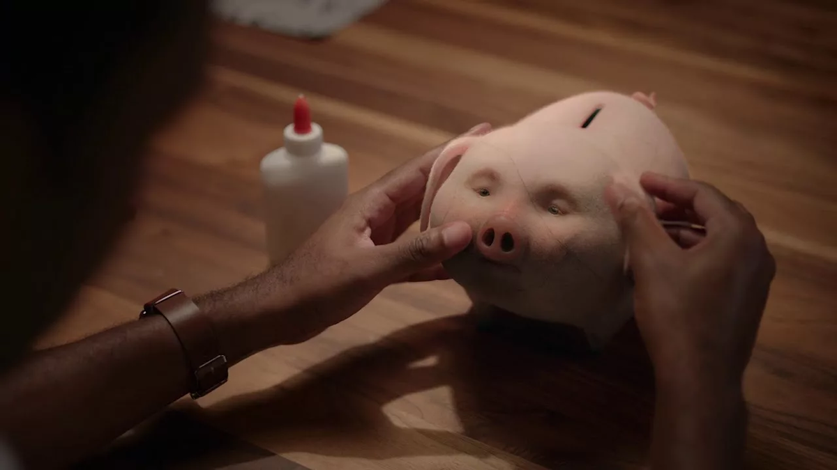 Осталась одна потрескавшаяся от времени копилка - розовая свинья. Хвостик ее был отбит и пропал без вести много лет назад, краска облупилась, открывая серые бока, глубокая трещина на холке была залеплена пожелтевшим лейкопластырем, обшарпанная мордочка со сломанным ухом, смотрела на все поблекшими, усталыми от времени глазками. Именно поэтому ее никто не взял.