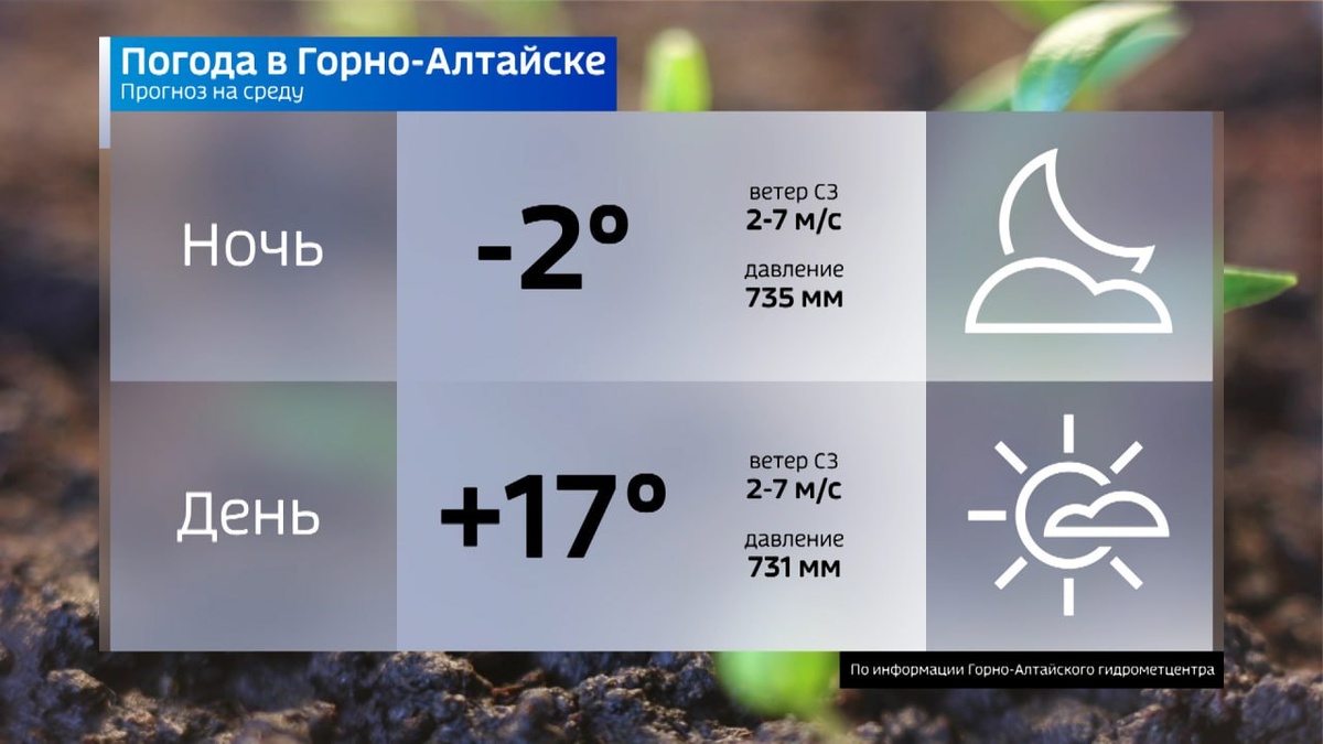 ☀️☀️☀️ Горно-Алтайск: ⛅️Сегодня ночью и завтра днем переменная облачность, преимущественно без осадков, ветер слабый Температура воздуха 🌡 ночью минус 1…3 °С, днем плюс 16…18 °С. По республике: ⛅️Сегодня ночью и завтра днем переменная облачность, преимущественно без осадков, ветер слабый, местами порывистый до 12 м/с, Температура воздуха 🌡 ночью минус 4…плюс 1 °С, местами минус 5…10 °С, днём плюс 13…18 °С, местами плюс 3…8 °С. #погода 👍 Подписывайся на Вести Эл Алтай