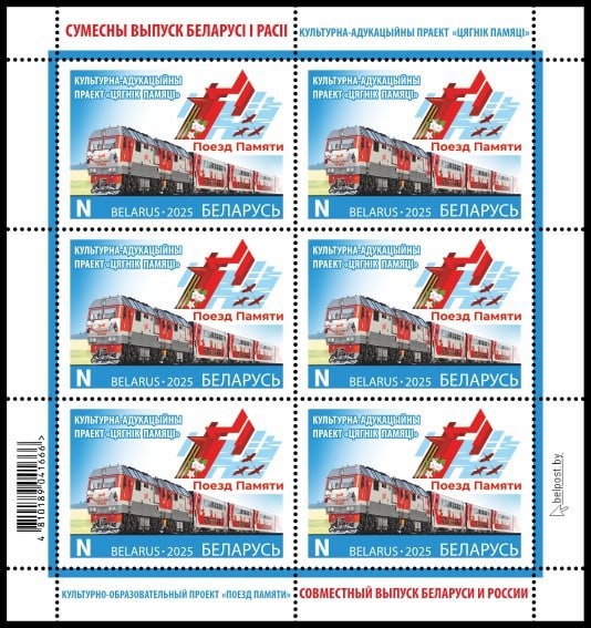 💥Минсвязи выпустит 18 апреля почтовую марку «Поезд Памяти» в честь одноименного белорусско-российского проекта — 18 апреля Министерство связи и информатизации Беларуси выпускает в обращение почтовую марку «Культурно-образовательный проект «Поезд Памяти» из серии «Совместный выпуск Беларуси и России», — проинформировали в пресс-службе РУП «Белпочта». — Художник — Александр Московец (Россия), дизайн Евгении Бедоник (Беларусь). В день выпуска почтовой марки в обращение на почтамте Минска и в Санкт-Петербурге (Россия) будут проводиться специальные гашения на конверте «Первый день». Тираж марки составляет 18 тысяч экземпляров. Печать осуществлялась в РУП «Бобруйская укрупненная типография им. А. Т. Непогодина». Номинал марки «N» соответствует тарифу на пересылку международной простой почтовой карточки неприоритетной.