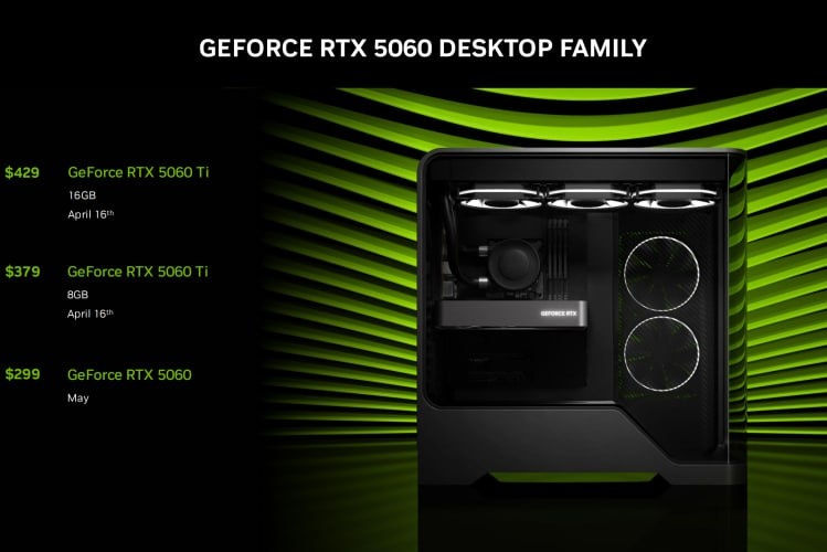 NVIDIA анонсировала семейство видеокарт RTX 5060 — в продажу поступят два варианта RTX 5060 Ti