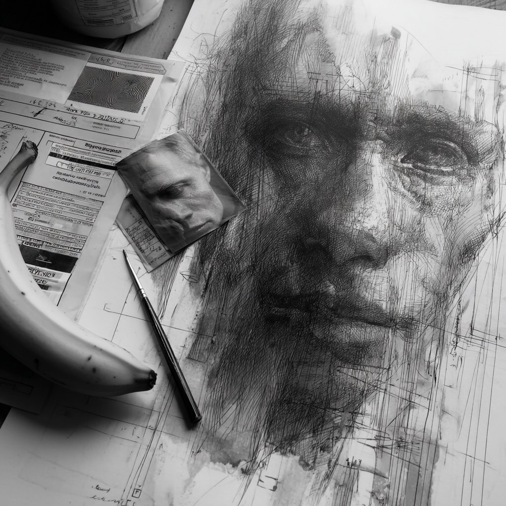 Создано на основе запроса: in vine charcoal brush, a banana for scale, biometric