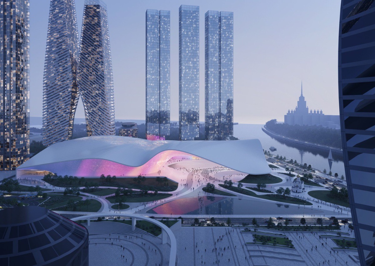 В ответ на пост Бюро «Atrium» на своём сайте публикует новые рендеры с изображённой архитектурой запланированного к реализации Национального центра «Россия», который будет построен на участке в Москве, в том месте, где сейчас располагаются павильоны выставочного комплекса «Экспоцентр». Приводим комментарий представителя бюро «Atrium», в котором звучит техническая детализация проекта и другая важная информация: Новый Национальный центр «Россия» будет располагаться в Московском международном деловом центре «Москва-Сити» и займет обширный участок 14,1 га на месте бывшего «Экспоцентра» на Красной Пресне. Целью проекта стало создание крытого событийного пространства с амфитеатром, который объединит 60 000 квадратных метров выставочных площадей, концертный зал на 3500 мест, медиацентр и молодёжный креативный кластер. Ключевой элемент проекта от мастерской «Atrium» — крытая событийная площадь с амфитеатром. В тёплое время года здесь будут проводиться различные общественные мероприятия. Зимо