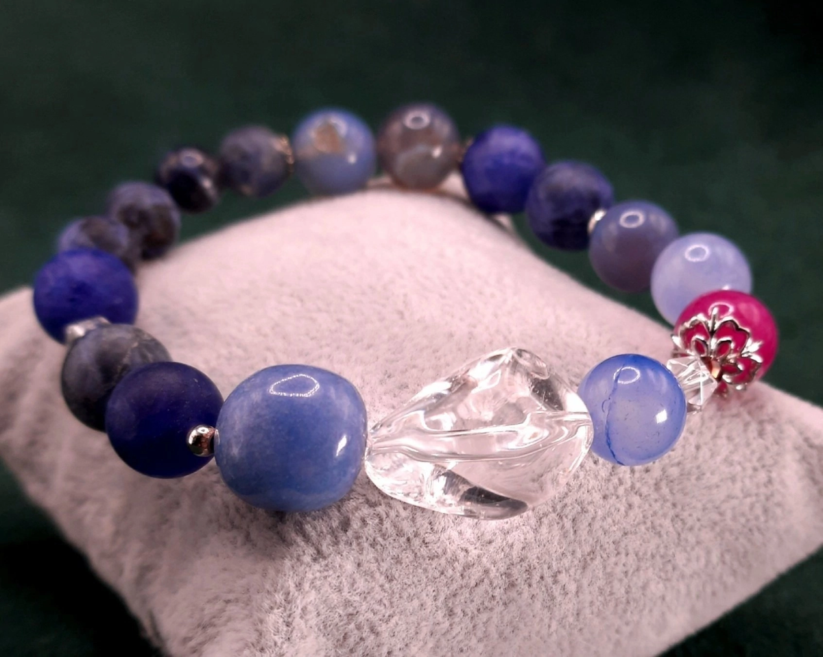 Взаимодействие арбузного турмалина, горного хрусталя, содалита и сапфирина – это мощное сочетание, чтобы привлечь любовь, создать гармоничные отношения и обрести внутренний покой.
