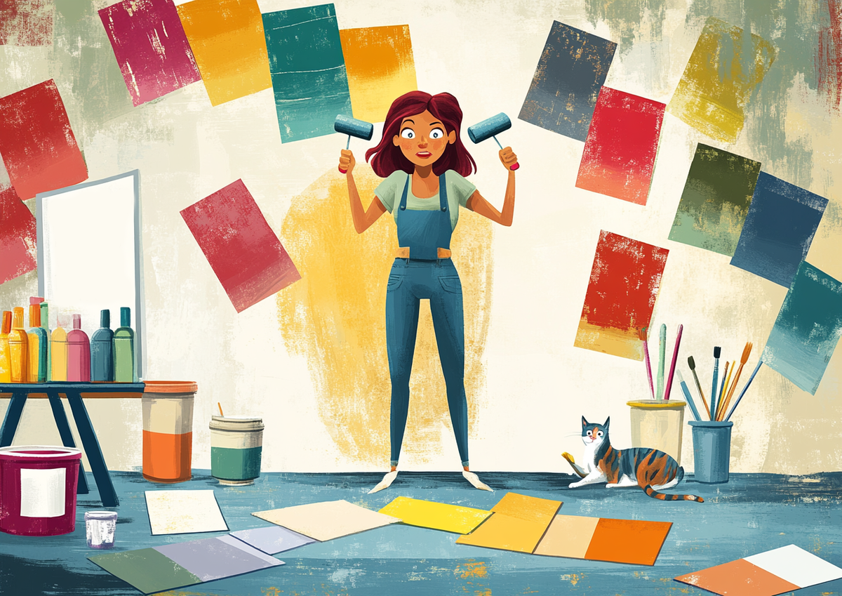 Вернемся к теме цвета и на этот раз поговорим о том, как выбрать цвет для ваших стен. Или почему краска на стене ведет себя как хамелеон с сюрпризами Стоишь в магазине с палитрой в руках, и вроде всё понятно: вот бежевый, вот серый, вот какой-то модный “шампиньон”. А потом — хлоп! — дома на стене всё выглядит совсем не так. Да и настроение у цвета, кажется, своё. Был нежный — стал тухлый, был нейтральный — стал фиолетовый. Если ты не хочешь в процессе ремонта стать специалистом по перекраске, сохраняй статью. В магазине у тебя были красивые карточки, идеальное освещение и уверенность, что «этот серо-бежевый будет идеально сочетаться с диваном». Но дома он стал… фиолетовым? Бинго. Почему так: Что делать: Цвет живет своей жизнью под разным освещением: Совет: если в комнате мало света, даже белый может казаться серым и унылым.