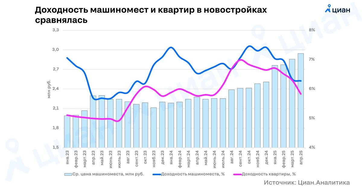 ⚡️ Доходность от паркингов почти догнала квартиры — Циан Год назад доходность здесь была на 2 п.п. выше, чем по квартирам — а в ЖК с дефицитом парковок разрыв доходил до 13–15%. Сейчас показатели сблизились. 👉Причины разные: аренда квартир корректируется на фоне роста цен, а вот паркинги растут в цене быстрее, чем аренда на них. 👉Алексей Попов, руководитель Циан.Аналитики: Паркинг реже получается сдать на «по-настоящему» длительный срок. У квартир меняются арендаторы, часть из которых ещё и уезжает летом из города или не пользуется автомобилем круглый год.