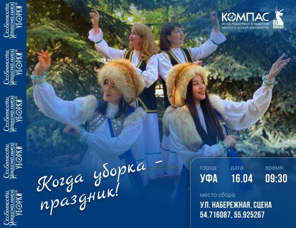 Национальный экологический фонд «Компас» три года пода подряд проводил акцию «Особенности национальной уборки». И за три года в этом уникальном мероприятии приняли участие около 30 тысяч жителей 19 регионов страны. Общими усилиями они смогли собрать более 300 тонн мусора. В Министерстве природопользования и экологии РБ рассказали, что в республике акция «Особенности национальной уборки» стартует 16 апреля при поддержке нацпроекта «Экологическое благополучие». Особенно радует то, что в этом году акция посвящена 80-летию Победы в Великой Отечественной войне. Ее мероприятия также пройдут в Калмыкии, Ингушетии, Чувашии, Бурятии, Якутии, Северной Осетии, Калининградской, Новосибирской, Мурманской областях, Севастополе. В региональном экологическом ведомстве отметили, что жители Башкирии присоединятся к акции, чтобы сделать свой регион чище и зарядиться энергией и хорошим настроением. Специалисты считают, что это не просто субботник, а яркий праздник с концертом, эковикториной и флешмобом «Ц