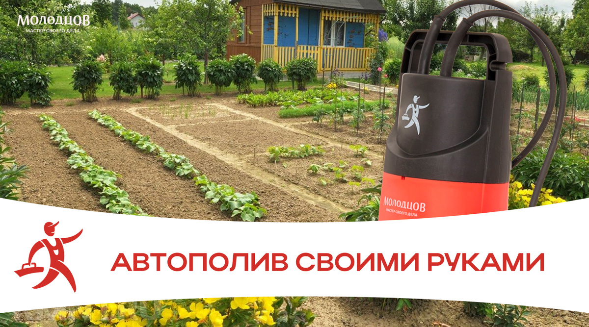 У нас на участке не так много растений, приезжаем мы на него раз в несколько недель. Но и газон нужно поливать. Так что решили сделать систему, что называется, из того, что у нас было, с минимальными затратами. Просто, чтобы можно было включить, полить, что нужно, и выключить. Рассказываем, что у нас получилось (мы даже высокие технологии использовали). Так получилось, что участок наш находится метрах в десяти от пруда. Не завидуйте, это его единственное преимущество - он на косогоре, коммуникаций нет и не будет, строить там что-то капитальное нельзя. Но зато техническая вода - рядом. Пруд по нашему замыслу и должен стать источником для системы полива. Забирать из него воду мы решили с помощью насоса “Молодцов”, который до этого купили для откачки воды из подвала в нашем жилом доме. Он относительно недорогой (хотя и не сказать, что прямо дешёвый “Китай”), прослужил нам уже два года. В подвале он установлен в глубоком приямке и включается автоматически при подъёме уровня воды благодаря