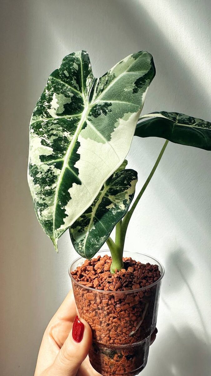 Алоказия Фрайдек 🤍💚 Это моя третья попытка) Первые две: на 99,9% зеленую и слишком белую смотрите на фото 🥲 Клубень проращавала в аквасоиле, поэтому сначала решила посадить в серамис, не убирая соил. Дальше посмотрю, переводить в керамзит или нет. Поливаю уже полноценным раствором удобрений для полугидро. Видео снимала всего пару недель. Дольше собиралась монтировать) Видела у кого-то из вас в комментариях под постами огроменные Фрайдек с кучей листьев! Хочу ещё! Показывайте и рассказывайте секреты успеха!❤️🔥 #timelapse_green #таймлапс #алоказияфрайдек @alenachachina смотри)