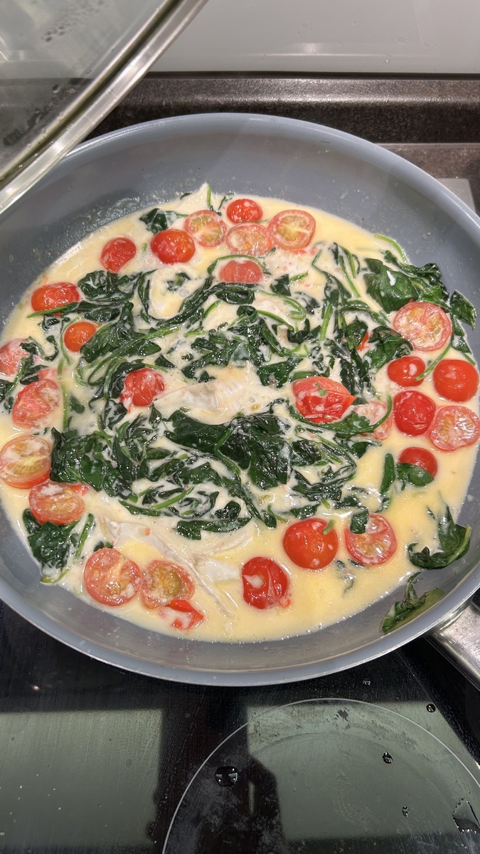 Я сегодня готовила сливочную пасту 😍 Получилось как в итальянском ресторане . Рецепт -3 зубчика чеснока -помидоры черри -шпинат -сыр бри -сливочное и растительное масло -сливки -паста любая или макароны 🔥 В общем , вначале растопить мало , добавить чеснок рубленные . Потом добавить шпинат , черри , потушить , положить сыр бри(предварительно его на кусочки порезать) Под крышку . Он должен растаять. Все перемешиваем , добавляем сливки . Потушили и уже отваренную пасту . Все соединили , перемешали и Бон аппетит 🥰😇
