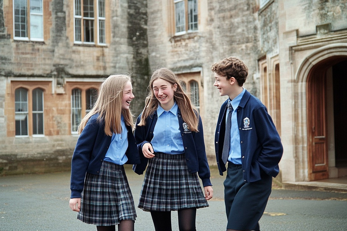 Создано на основе запроса: Photo of two teenage girls and one boy wearing blue school blouses, plaid skirts, and black tights, smiling as they walk across the courtyard at an English high school. Themes include laughing with each other while standing in front of an old building. --- Автоперевод: Фото двух девочек -подростков и одного мальчика, одетого в синие школьные блузки, клетчатые юбки и черные колготки, улыбаясь, когда они ходят по двору в английской средней школе. Какое твое мнение? 🤔 https://dzen.ru/id/65c0c65c86e4f837c27b24d7 #ИИ #AI #нейросеть #midjourney #art
