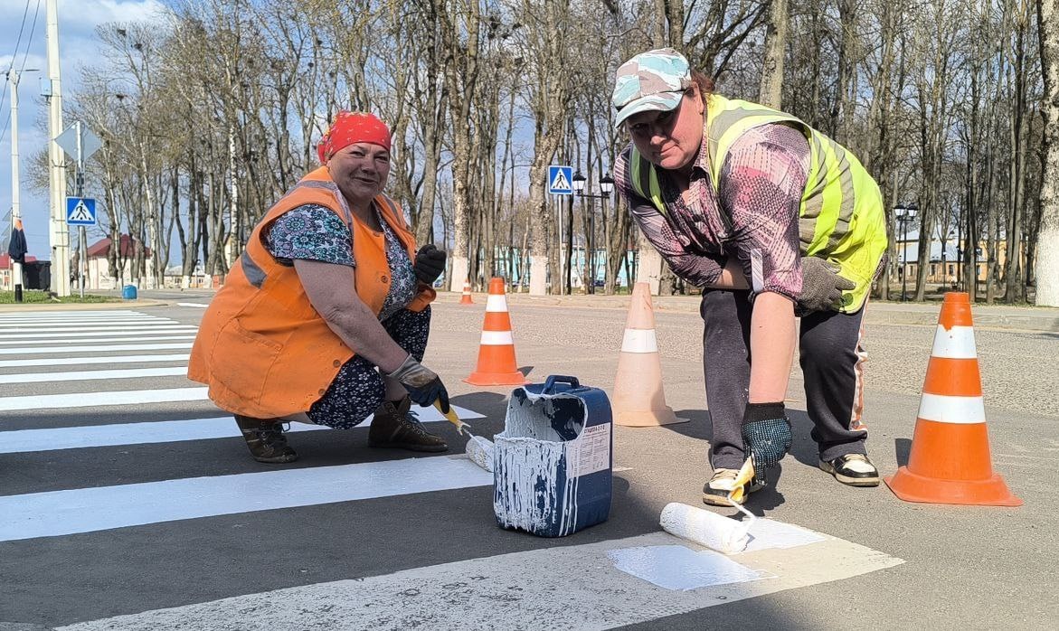 👨🎨 Труженики коммунальной службы приступили к обновлению дорожной разметки в Бешенковичах 📸📹Рабочих по благоустройству Татьяну Агееву и Наталью Ворохобко застали сегодня на пересечении улиц Володарского и Карла Маркса.
