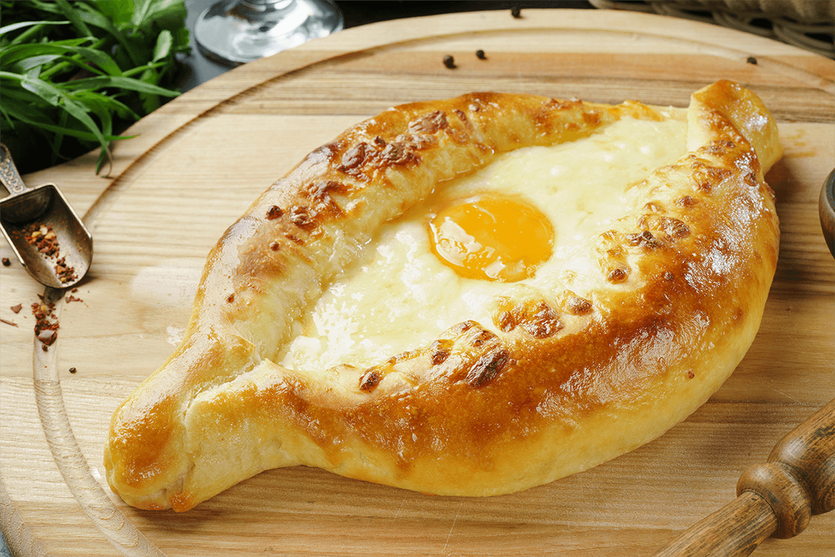 Наверное, самый фотогеничный хачапури, известный за пределами Грузии. Его форма — открытая "лодочка", в центре которой — расплавленный сыр, яйцо и кусочек сливочного масла. По традиции, есть его нужно руками, отламывая бортики и макая в сырно-яичную начинку.