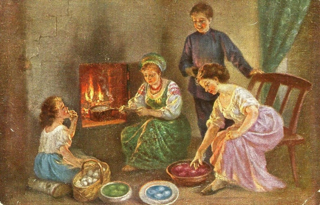 А дома, в нашей маленькой квартирке, в это время на Страстной неделе кипели такие интересные хлопоты… Все делалось по порядку, по заветам старины, в определенное время… Мы во всем помогали маме и няне. Сначала шла уборка квартиры: мама и няня, повязав головы платками, обметали потолки, стены, мыли окна, печи, полы, скребли каждый уголок, чистили, обтирали каждую вещь. Уборка шла на славу.