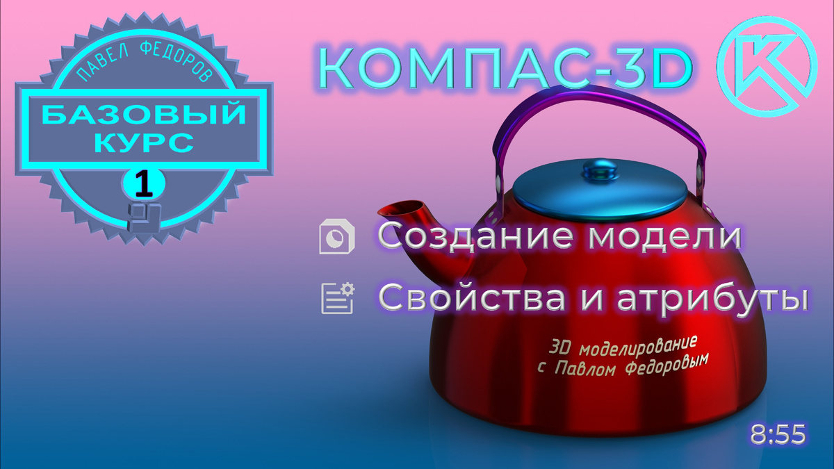 Всем привет сегодня мы проведем первый урок базового курса по 3D моделированию в программе компас-3D. Рассмотрим создание модели, изменение ее свойств и Я расскажу зачем же вообще менять свойства модели. При первом открытии программы компас-3D вы попадаете на главную страницу. Если вы ранее уже открывали программу компас-3D, то у Вас откроются последние открытые файлы в этом случае создать модель можно нажав кнопку, расположенную на ленте – создать. Или выбрать вкладку файл - создать. Перед тем как приступать к моделированию рекомендую настроить атрибуты модели такие как материал, плотность, цвет. Если у вас левая панель отличается по виду, то скорей всего вы перещелкнули панели, вернуть панель дерево построения можно нажав на кнопку дерево в верхнем левом углу. Изменить свойства можно в панели свойств дерева построения. Есть два способа вызова из дерева построения панели свойств можно два раза щелкнуть левой клавишей мыши по значку детали либо нажать правую клавишу мыши и из контекстн