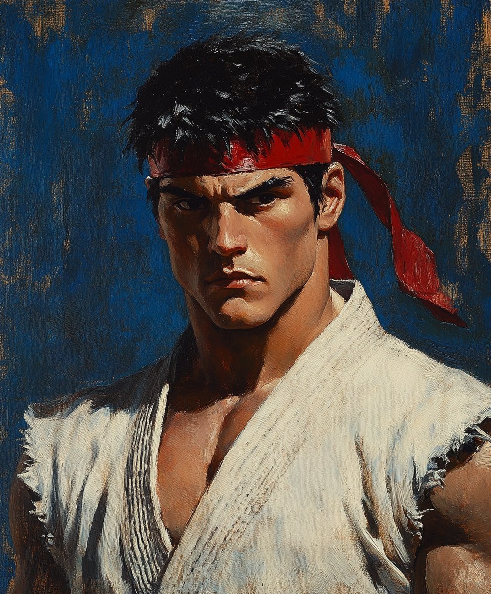 Создано на основе запроса: oil painting by edward hopper of ryu from street fighter
