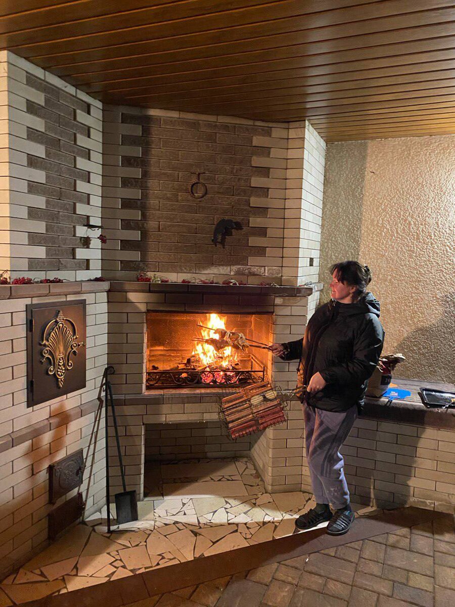 Вечером, когда горы окрасились в мягкие розовые оттенки, мы разожгли мангал и начали жарить сочный шашлык из баранины