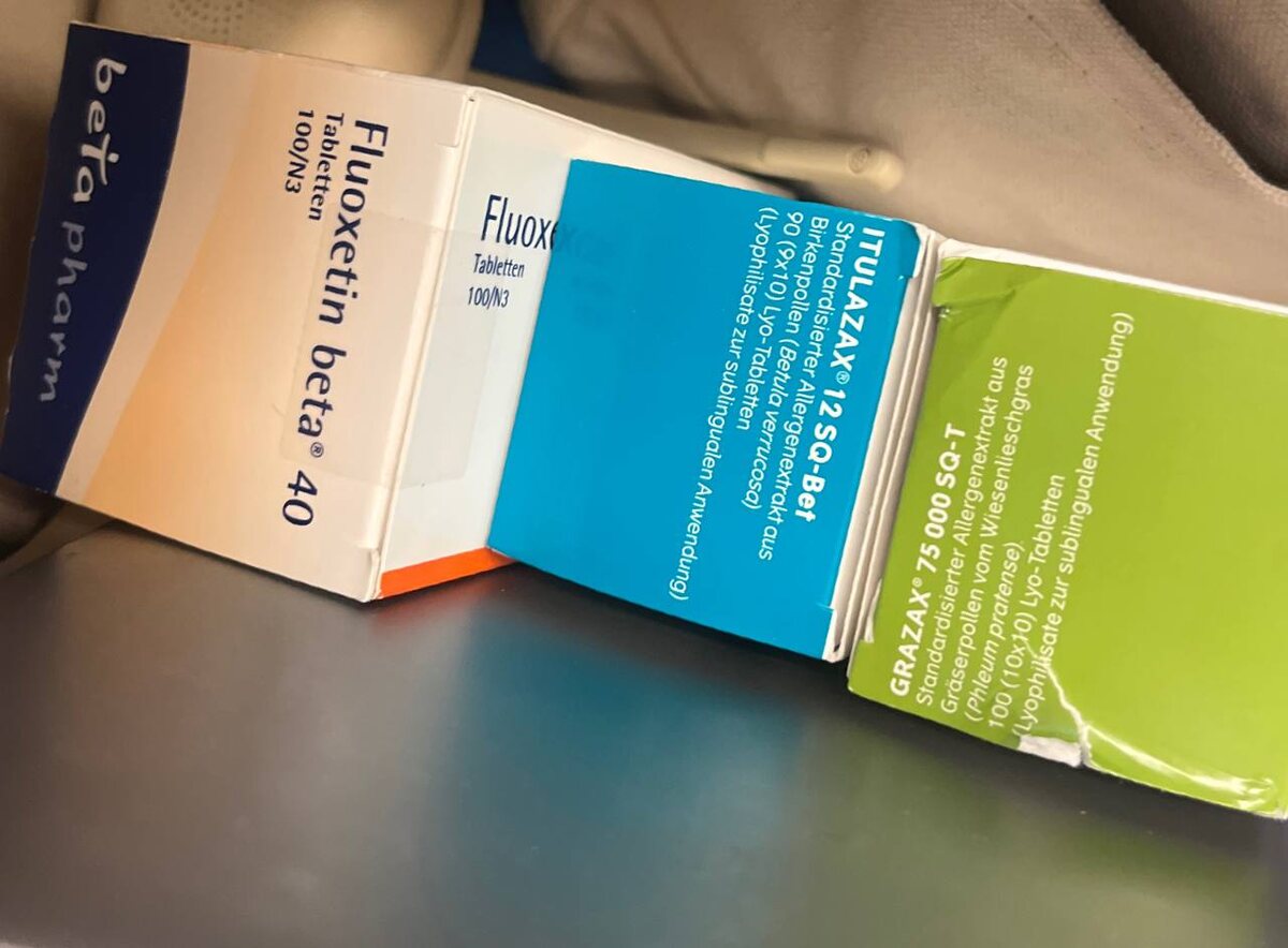 Как выглядит 1200€, если ты аллергик (и немного депрессивный). Справа таблетки для АСИТа (аллерген-специфичная иммуно-терапия). Березы и травы. Только они суммарно стоят 1150€. И это на три месяца. Да, у меня есть страховка, и поэтому я заплатила всего по 10€ за каждую пачку. Но это всё равно ещё меньше, чем я плачу за медицинскую страховку в германии 🥲 Сегодня ехала с этими коробками в метро и думала: «блин, украдете телефон или айпад — будет не так жалко, как эти таблетосы» 😅