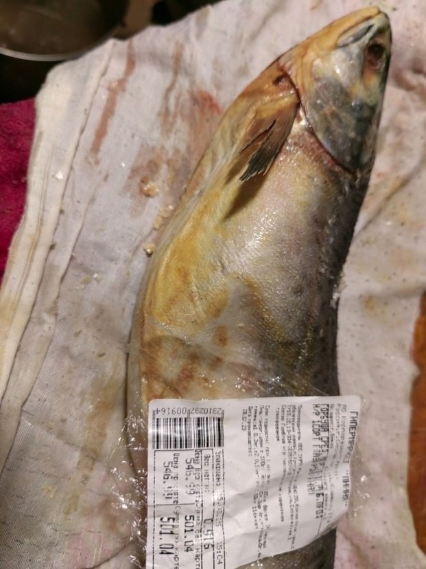 Купила в Линии горбушу с/м, которая была обмотана пленкой и было плохо видно, что она давно лежит в морозилке