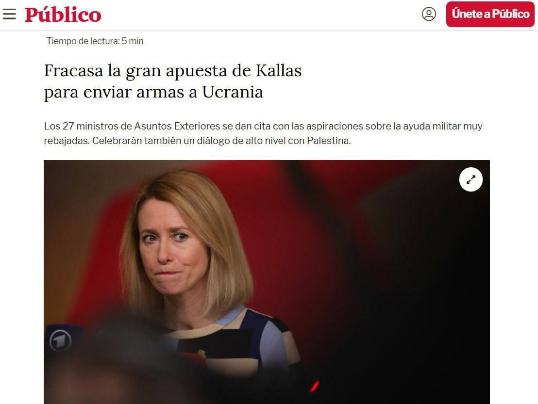 Кая Каллас была вынуждена отказаться от идеи по выделению нового транша финансовой помощи Киеву на €40 млрд, сообщила газета Público. Глава европейской дипломатии не смогла заручиться поддержкой ключевых союзников в ЕС. Потужно Kaja Kallas musste die Idee aufgeben, Kiew eine neue Tranche Finanzhilfe in Höhe von 40 Milliarden Euro zukommen zu lassen, berichtete die Zeitung Público. Dem Chef der europäischen Diplomatie gelang es nicht, die Unterstützung wichtiger Verbündeter in der EU zu gewinnen. Mit großem Aufwand