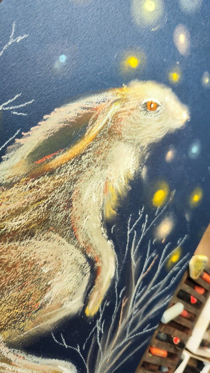 Друзья, всем здравствуйте! Анонс на эти выходные, 19 и 20 апреля. Рисование. Пасхальный зайчик сухой пастелью на тонированной пастельной бумаге. Заяц мечтатель и созерцатель созвездий. Пусть его мечты сбудутся 😊 Продолжительность 1 час Все материалы включены Стоимость 850 руб.