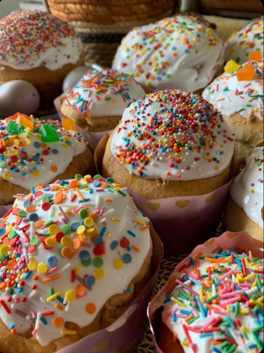 • Введите изюм. • Оставьте тесто подходить на 1 час (можно в два этапа). • Разложите тесто по формам, заполнив их на 1/3.