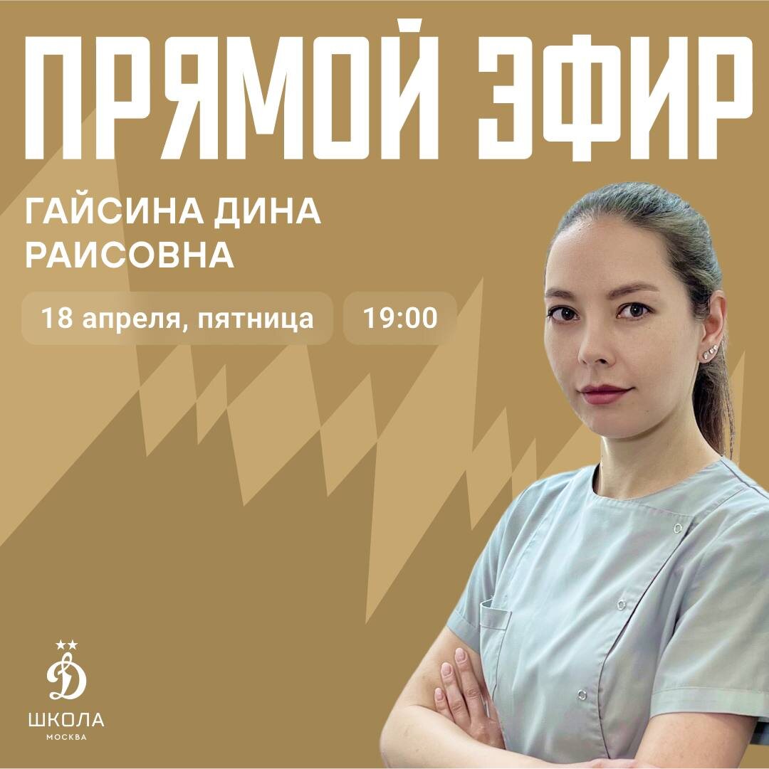 Прямой эфир с подологом - Диной Раисовной Гайсиной специально для школы ФК «Динамо» ⚡️ ◾️Когда: 18 апреля ◾️Во сколько: 19:00 ◾️Где: телеграм-канал школы «Динамо» Разберем всё о здоровье стоп👇 — Травмы и травматизация; — Подбор обуви для футболистов; — Деформации стоп и их профилактика; — Гигиена! Готовьте вопросы - будет много полезного! До встречи 💙