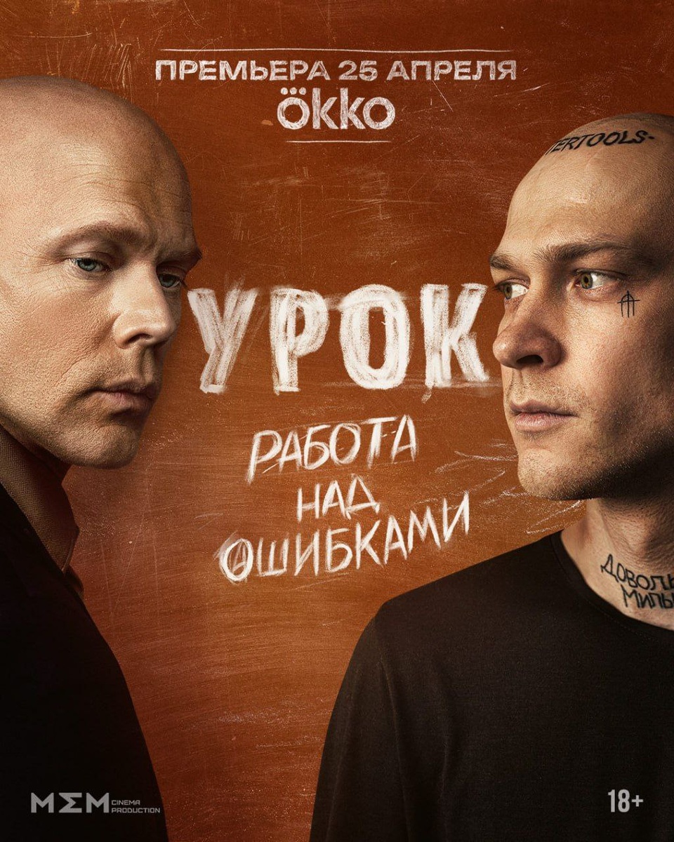 Постер предстоящего сериала «Урок», в котором Юра Борисов возвращается в школу. В центре истории — два максимально непохожих брата: бывший рэпер Антон (Борисов), ищущий себя после трагедии, и энергичный заместитель директора школы Константин (Даниил Воробьев). Антон возвращается в родной город после аварии и лечения в наркологической клинике. Старший брат обещает ему помочь вернуться к нормальной жизни, если бывший музыкант согласится поработать учителем. Режиссер Сергей Филатов создал многослойную историю, соединив психологическую драму, комедию и местами даже триллер. Героям есть чему поучиться друг у друга, так что скучно не будет. Премьера — 25 апреля.