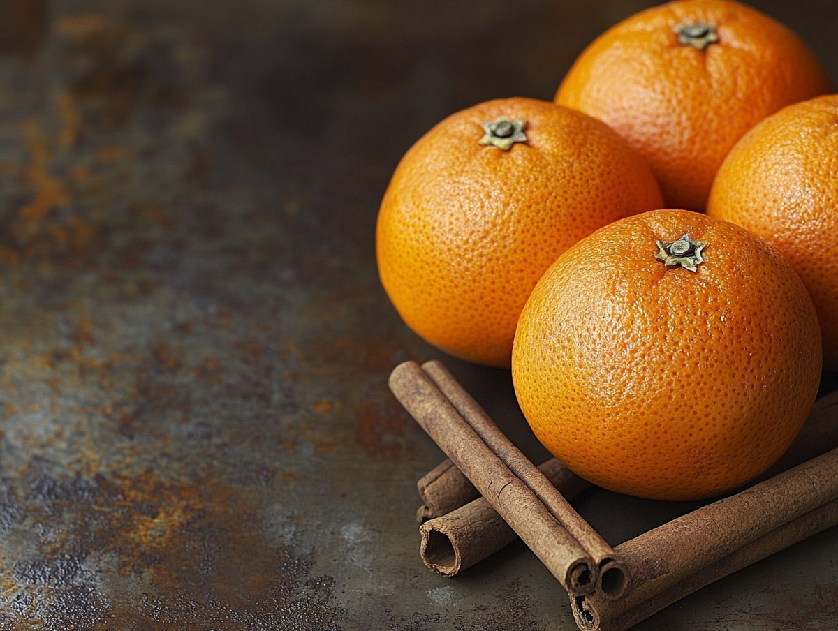 Создано на основе запроса: Tangerines with cinnamon sticks on a dark rustic background, cozy and warm lighting, winter mood
