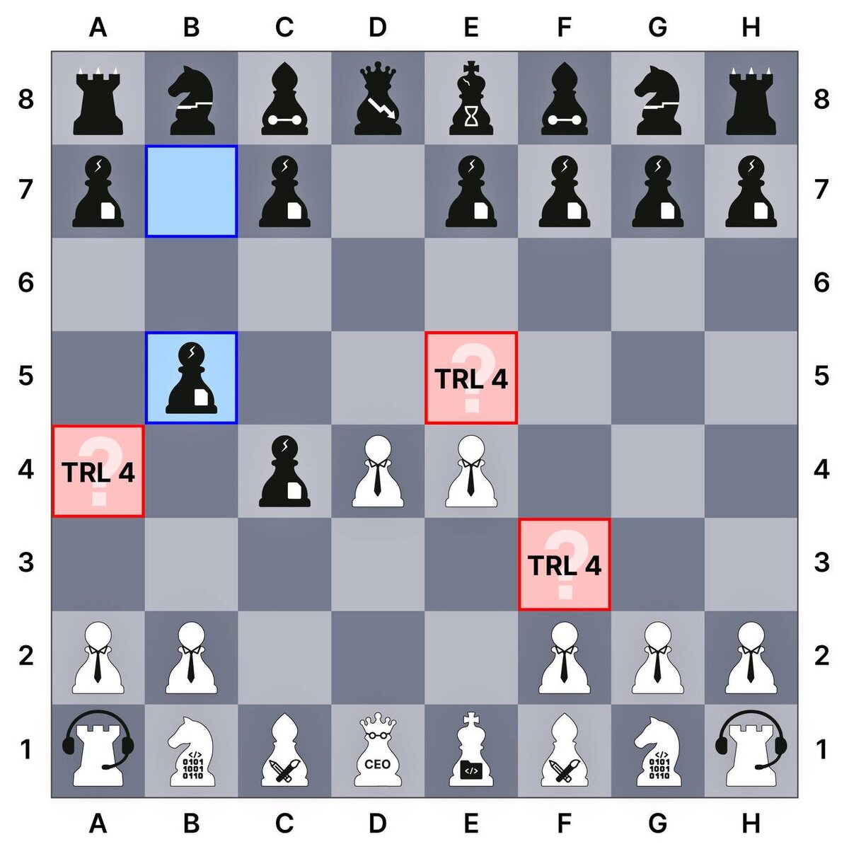 ♟️Патентные шахматы: новый ход ▪️Ход чёрных: b5 – защита пешки любой ценой Чёрные стараются удержать завоёванное преимущество – защищают пешку c4 ходом b5. Но такая защита требует жертв: фигуры не развиваются, фланг ослабляется, и в долгосрочной перспективе позиция может сыграть злую шутку с черными. 📈 Что это значит для стартапа? Разработка не всегда идет легко. Пока инженерная команда активно разрабатывала и тестировала на прошлом ходу, конкуренты совершенствуют свое решение и усиливают патентную защиту, чтобы сохранить рыночное преимущество. 🧩 Теперь — ваш ход: отступить, развиваться или атаковать? 🔹1. a4 – Атака на встречных курсах Пешка b5 — слабое звено всей конструкции у черных, почему бы этим не воспользоваться? Как говорили классики: “Дави, пока не заболит”. Если удастся разменяться, пешка c4 останется без опоры и можно будет как следует развернуться. 📊 В бизнесе: вы сразу проверяете патенты конкурента на прочность, ищете уязвимости, корректируете свои наработки, что