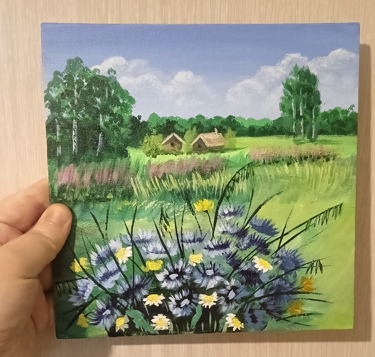 Васильки получились какие-то задрипанные)) Но облачка нравятся.