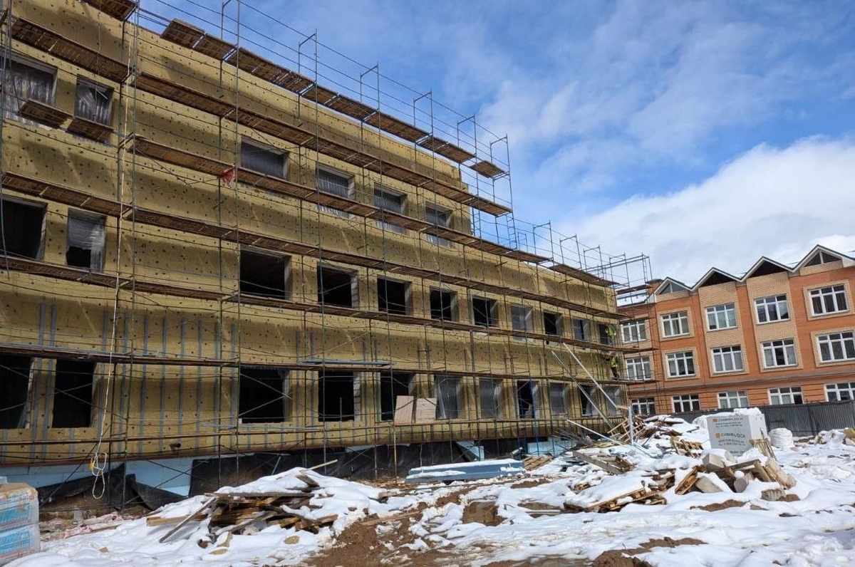 В новом корпусе школы N°3 уже во всю делается фасад и внутрянка