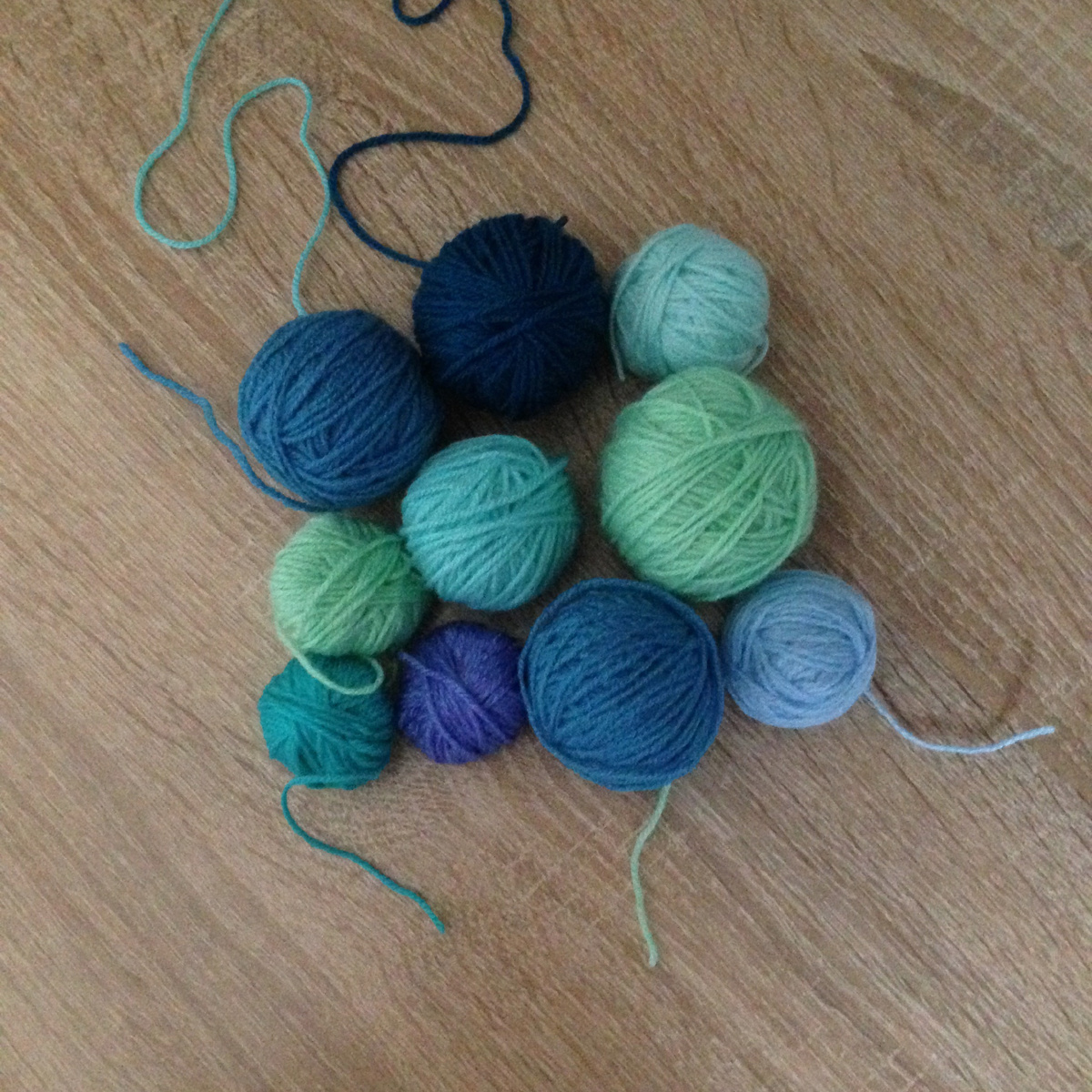 Продолжаю вязать из своих нескончаемых запасов всякой разной пряжи. Решила связать ещё одну подушку из остатков такой пряжи, также в мозаичной технике вязания крючком, и связать не просто из остатков какие есть, а так, чтобы получилось красивое сочетание цвета в узоре мотива. Для этого выбрала остатки пряжи синих и зелёных оттенков, всего получилось восемь. Осталось только определиться со вторым цветом пряжи и по какой схеме вязать, чтобы все оттенки хорошо вписались в мотив. С начало особо что-то ничего не придумывалось, по потом я вспомнила, что вязала образец из такой палитры цветов. Нашла старую статью, и не стала ничего нового выдумывать, как говорится, всё новое хорошо забытое старое. Вязала по той же схеме и по тому же принципу. Последовательность цветов подбирала от более светлых к более тёмным, чередуя по возможности синие оттенки с зелёными. Благодаря чёрному цвету второй нити, мотив не пестрит, но в то же время, цвета не сливаются и не теряются в общем мотиве. Пряжа у мен