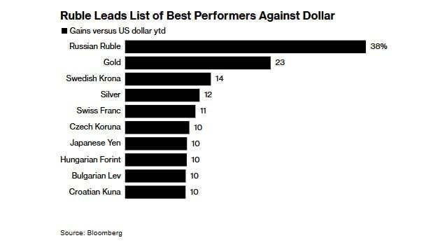 Рубль сильнее всех валют укрепился к доллару в этом году, — Bloomberg.