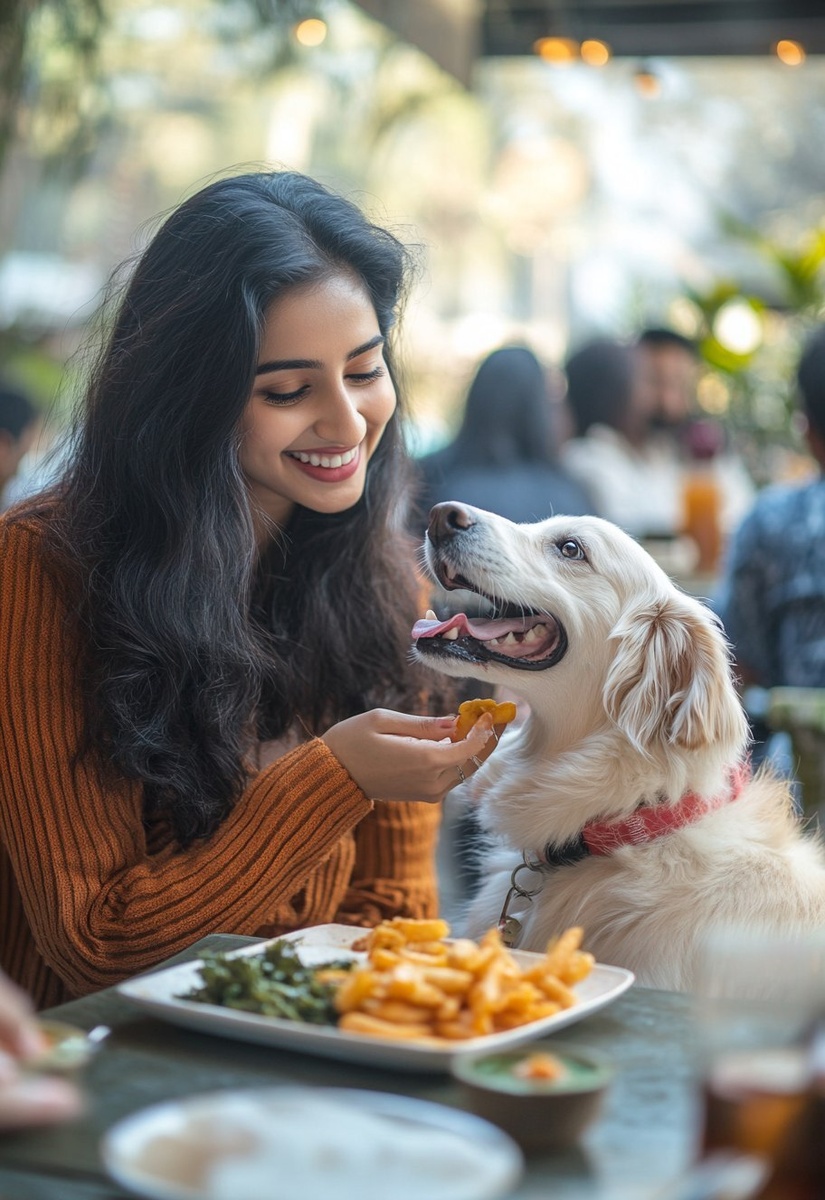 Создано на основе запроса: A female in their Gen X, Indian with direct gaze. A Representative of a group of consumer segments. Happy, smiling. At a bustling pet-friendly outdoor cafe. Feeding her pet a specially prepared pet meal. --- Автоперевод: Женщина в своем генерал Х, индийская с прямым взглядом. Интересно получилось? 🤔 https://dzen.ru/id/65c0c65c86e4f837c27b24d7 #ИИ #AI #нейросеть #midjourney #art